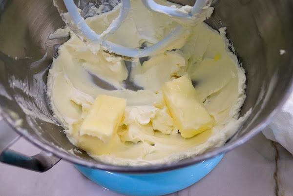 Add the unsalted butter to the cream cheese and cream them together until fluffy.