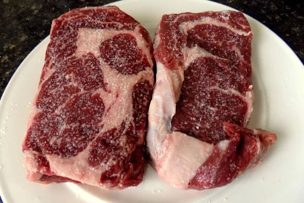 Remove Moisture: After the resting time, use a paper towel to blot the moisture that forms on the steaks. This excess water, drawn out by the salt, ensures a juicier steak.